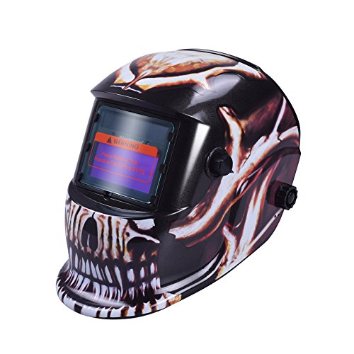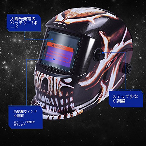 Nuzamas 太陽電源自動暗く溶接ヘルメット マスク溶接顔保護アーク Tig Mig 研削プラズマ切断用調節可能な日陰範囲 DIN4/9-13 UV/IV 保護 DIN16 クールなスカル
