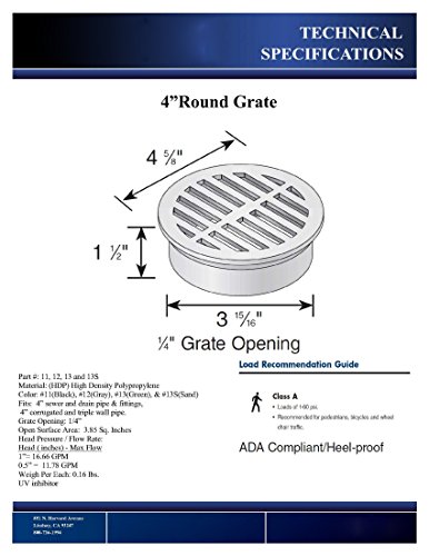 4" black round grate. Fits 4" sewer and drain pipe and fittings and 4" corrugated pipe. Black ---- 1. 海外直輸入品となりますので、新品であっても、パッケージに多少のダメージがある場合もございますが、商品本体には問題ございませんのでご安心ください。2. 日本国内でのメーカーによる製品保証等は適用されません。3. パッケージや、説明書等は、英語表記となります。
