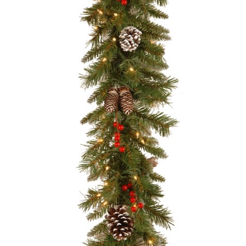 - National Tree 9 Foot by 10 Inch Frosted Berry Garland with 100 Clear Lights (FRB-9GLO-1)