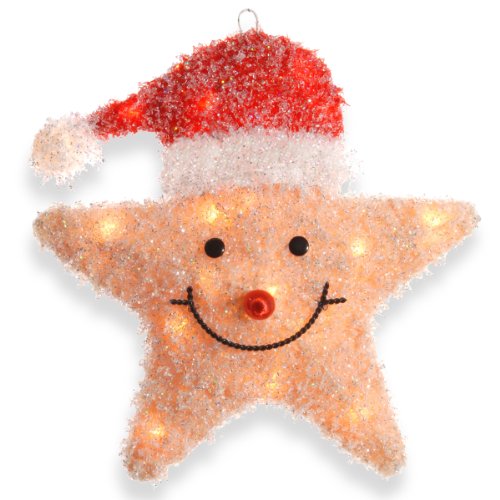 - National Tree MZST-18AL Smiling Yellow Star with Red Hat and 20 Clear Lights-UL, 18-Inch