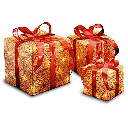 National Tree Assorted Gold Sisal Gift Boxes with Clear Lights, Set of 3 (MZGB-ASST-1L-1) [並行輸入品]