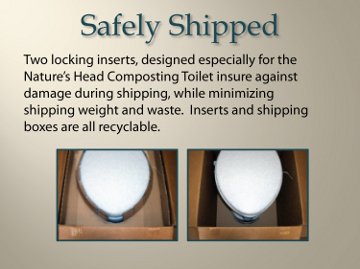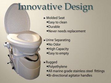 Nature's Headのコンポストトイレは最新のデザインが採用された最高の価値をもたらす、最も信頼できるポータブルで自己完結型のトイレです。海の上でも大地の上でも道路の上でもお使いいただけます。「このトイレまたはヘッド(海兵用語で「トイレ」の意味)は長年水兵を務める2人の兵士が、市場で最もユーザーフレンドリーなトイレを作ろうと思い立ち、設計したものです。当社の製品は海軍の過酷な環境に耐えるように設計されており、どんな場所ででもお使いいただけますが、特に下水道や電気などが行き届いていない場所であったり、レジャーやキャンプ、船上や作業場、倉庫、テント、トラックの中ででもお使いいただけます。最も重要なのは、このトイレには他のタンクシステムに付きものの嫌な臭いがしないという点です。トイレ内には小型の換気扇が内蔵されており、空気の循環を促して周囲の環境に嫌な臭いがこもらないようにしてくれます。元々は船舶での使用を想定して設計された本製品には、頑丈なデザインと素材(すべてのステンレスが使用されています)が採用されており、どのような環境でも極めて優れた耐久性を発揮することが実証済みです。