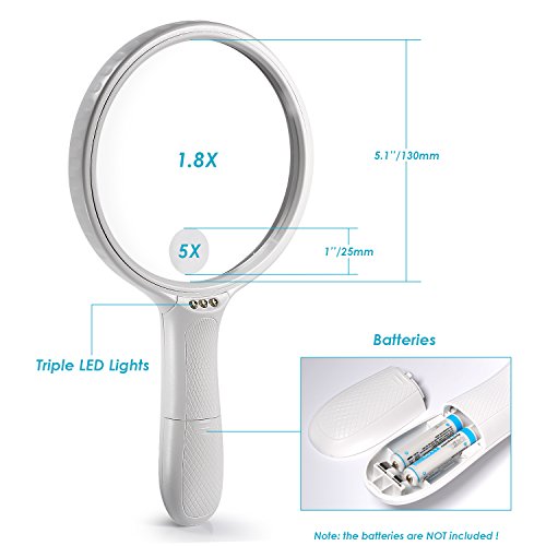 Neewer® 3 LEDライト1.8X5Xハンドヘルド拡大鏡 人間工学に基づいてデザインしたハンド拡大鏡 シニア読書 趣味 工芸品 コンピュータの修復とジュエリールーペ(ブラック)に最適(黒)