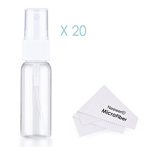 Neewer 20個の空クリアプラスチック ファイン ミスト スプレーボトルと2枚のマイクロファイバークリーニングクロス 漏れない20ミリリットルのポータブル詰替容器 洗浄液、エアーフレッシュナー、トナーに対応
