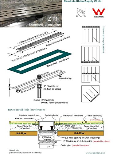 neodrain zt1kg03 LinearシャワーDrain高さ調節可能QuadratoパターンGrate、24インチ、つや消し304ステンレススチール 24インチ ZT1-24-KG03