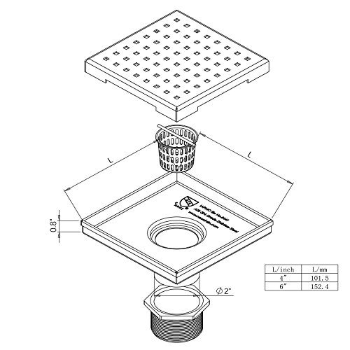 neodrain zs3s04正方形シャワーDrain with QuadratoパターンGrate、4インチ、つや消し304ステンレススチール 4インチ ZS3-4-S04