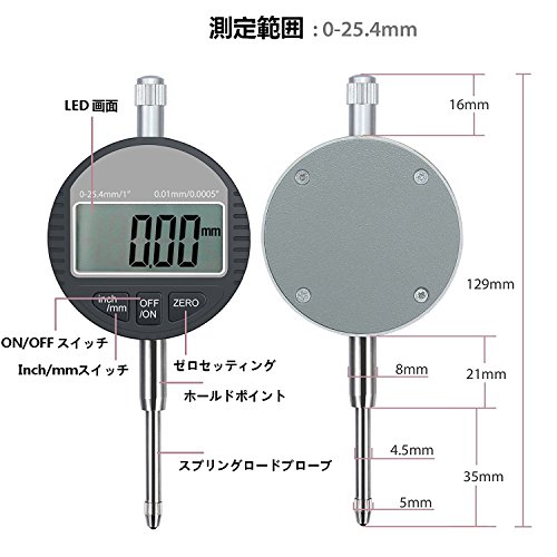 Neoteck デジタルダイヤルゲージ デジタルプローブインジケータ 高精度0.01mm レンジ0-25.4mm 18ヶ月保証期間