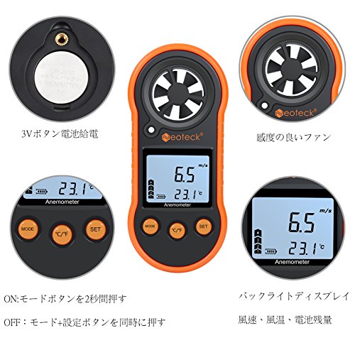 Neoteck 風速計 デジタル 風量計 風力計 小型 温度測定機能あり 室外作業 漁業 気象観測 18ヶ月保証期間