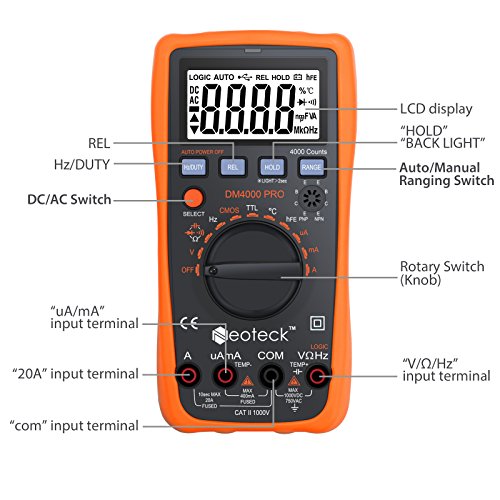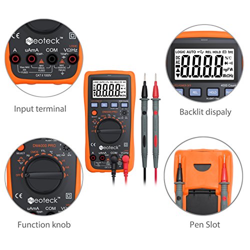 neoteckデジタルテスター4000カウント自動手動Ranging AC / DC電圧電流抵抗キャパシタンスwithマルチテスターバックライトLCD for School Laboratory工場とその他の社会的フィールド