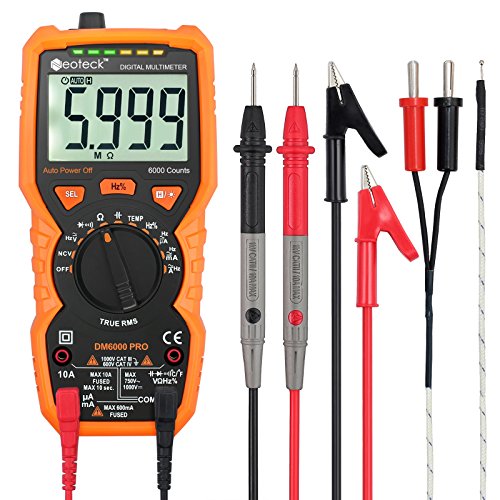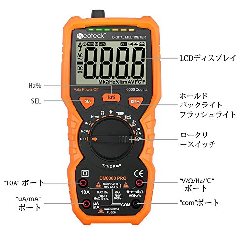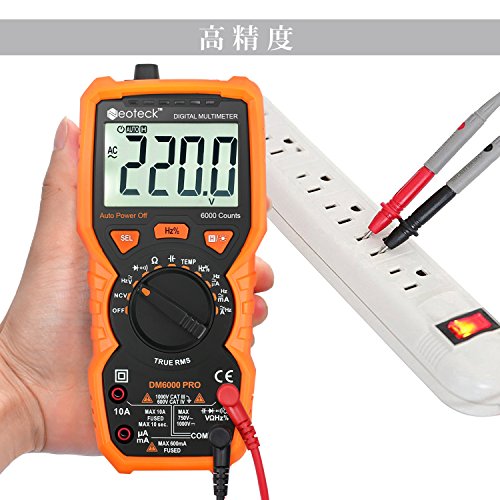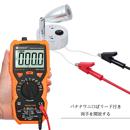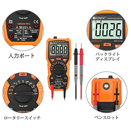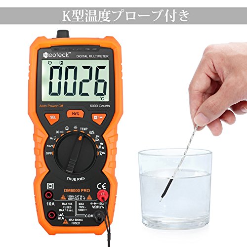 - 【大幅測定】6000カウント、AC / DC電圧、電流、抵抗、連続性、静電容量、温度および周波数を測定できます。True RMS測定機能で読数より精確になります。
