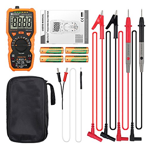 Neoteck デジタルマルチメーター 6000カウント NCV 電圧 電流 抵抗 温度 容量 周波数 自動測定 温度プローブ付き ワニ口クリップケーブル付き ツールバッグ付き