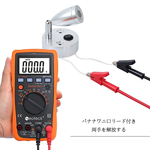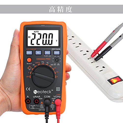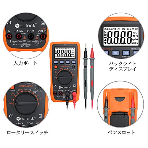 Neoteck デジタルマルチメーター 4000カウント 温度プローブ付きワニ口クリップ付きTTL 電圧 電流 抵抗 容量 温度 周波数測定 二极管三极管 LED 18ヶ月保証付き