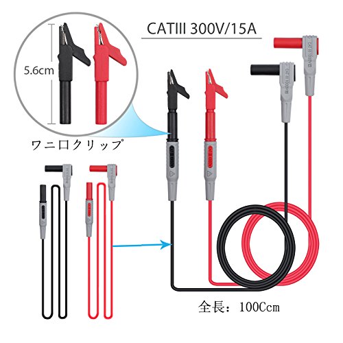 - 2つのサイズのワニ口クッリプ、測定体を挟む必要がある場合は非常に安全かつ便利です。