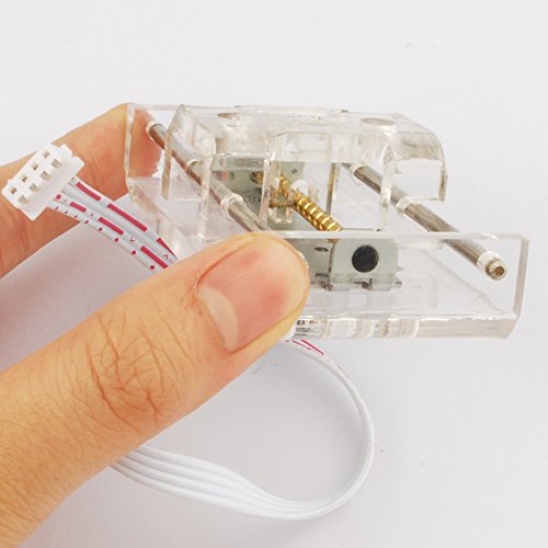 供給電圧:4-5v直流(A4988ドライブを8-24v) 相抵抗器:6ohm 相電流:約600mA スクリューの長さ:74mm 船台総長110mm(この長さ手製で加工誤差1 mm) スライドストローク:69mm行程、 ピッチ:3 mm リード:3 mm 歩距角:18° 垂直アップ力:約180g 平置きでスライド荷重:1300g実行できる、1000グラムの安定運転。 無負荷最速直線速度:150 mm / s。荷重は大きい値が小さい。 最大パルス数:毎秒最大パルス数:(1000以上)を。上の速度を極限に。早く壊れては電機、電機、電機が運転しない。