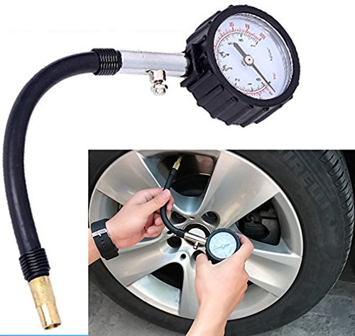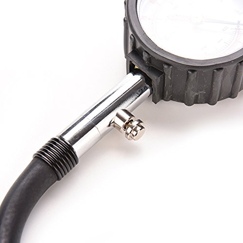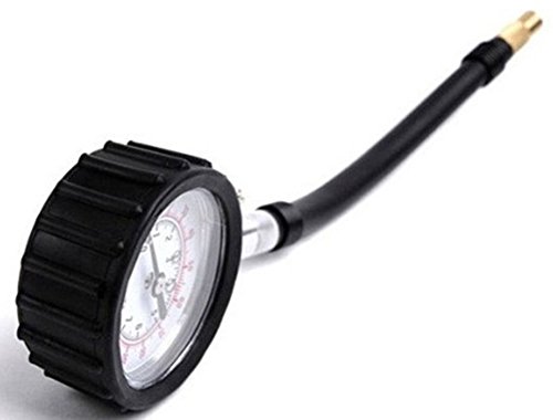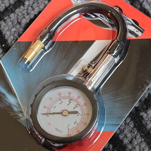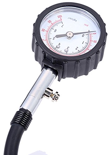 高精度車タイヤゲージ タイヤ圧力テーブル エアーゲージ スイブル角チャックの表示で、0-100 PSIを示して、ほとんどの車、トラック、オートバイや自転車に最適なゲージです。 高価なリム、ホイールなどを傷つけないようにホースに柔らかい編組が覆われています ユニットが落下しないように、ダイヤルが保護ゴムガードに囲まれています。 LBSとKBSでマークします。 使用方法: タイヤバルブの結び目をオフスクリューしてください。 バルブにゲージの銅ヘッドを固定してください。 その後、デバイスは圧力が表示されます。