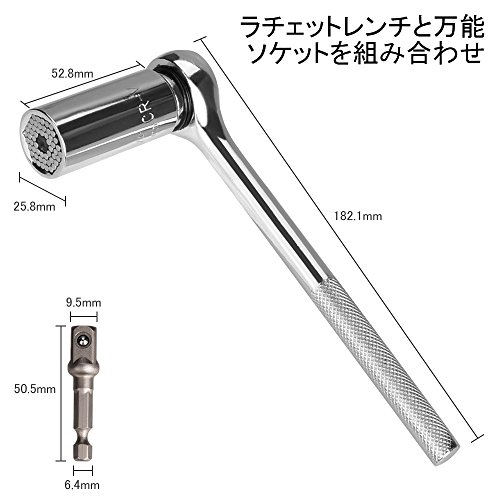 材 質:万能ソケットはクロムバナジウム合金鋼製、ドリルアダプターとラチェットレンチは高炭素を採用し