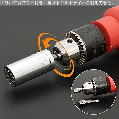 Ninonly 万能ソケット レンチ 7~19mm ユニバーサルソケット ドリルアダプター付き インチねじ ナット 多機能 3点セット 修理 修復