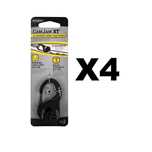 Nite Ize CamJam XTブラックアルミニウムロープ&コードTightener Tie Downツール( 4 -パック)
