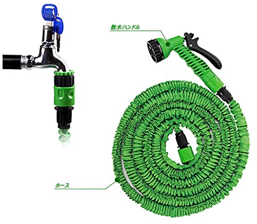 伸びる魔法のホース史上最長30mなんと10mのホースが30mに散水ノズルも7種類 (グリーン)