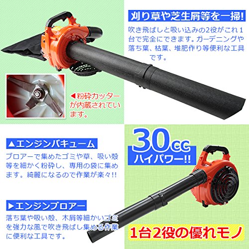 エンジン式ブロワ 排気量30cc 強力エンジンブロア 1台2役 バキューム 送風機 農場 畑 庭 掃除 吹き飛ばす 手持ち ブロワー