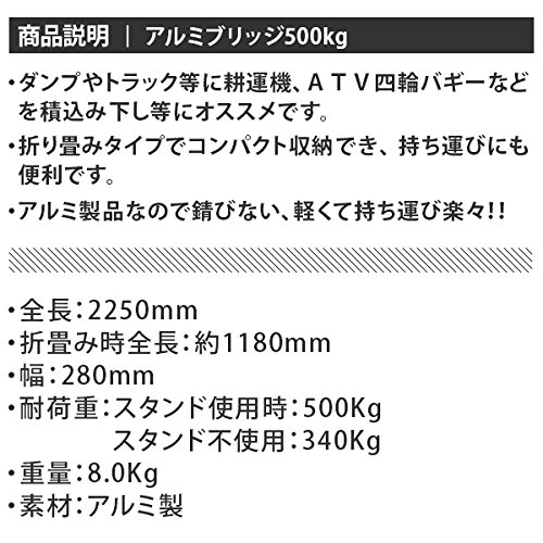 最新型のアルミラダー ATV四輪バギー・ダンプやトラック等にユンボやローラー・耕運機・バイクなどを積込みする為の折りたたみ式アルミラダーです。