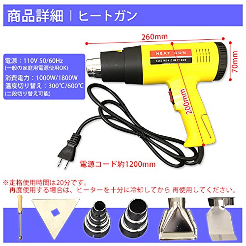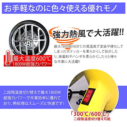 ヒートガン 1800W 強弱2段階切り替え可能 熱風機 アタッチメント 専用収納ケース付き