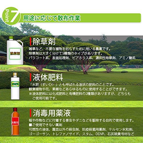 - 害虫駆除、春物、農薬、消毒、除草などに、幅広い用途に使えます。
