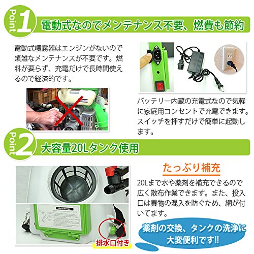 電動噴霧器 背負式 20L 充電式 肩掛け式 / 20リットルタンク 軽量 静音 害虫駆除 春物 農薬 消毒 除草 液体肥料