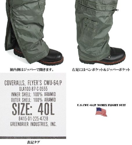 実物 新品 米軍CWU-64/P NOMEX フライトスーツ 40L