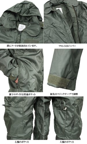 中間気温帯 (Intermediate Cold Weather) エリア向けのCWU-45/Pフライトジャケットをそのままの素材を使用してツナギにしたデザインの寒冷地向けのフライトスーツです。