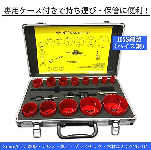 ホールソー セット 16本セット ホールソーキット マルチホルソー ハイス鋼 穴開け 木工 金工 旋盤 ドリル プラ板 配管 専用ケース付き