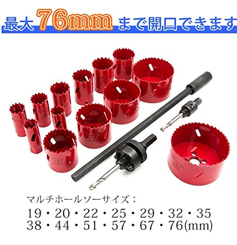 ホールソーサイズ:19・20・22・25・29・32・35・38・44・51・57・67・76mm