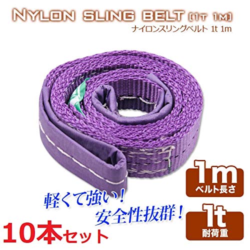 スリングベルト 1t 1m 幅25mm 【10本セット】ベルトスリング 玉掛 吊ベルト 繊維ベルト ナイロンベルト クレーンベルト …