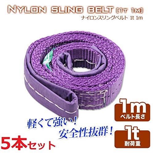 スリングベルト 1t 1m 幅25mm 【5本セット】ベルトスリング 玉掛 吊ベルト 繊維ベルト ナイロンベルト クレーンベルト