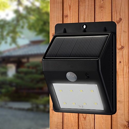 ソーラー充電式 ウォールライト【1年間の安心保証】人感センサーと八つLED電球内臓 明暗センサー搭載(屋外/アウトドア仕様) 省エネかつ環境に優しい(防水、電池不要)