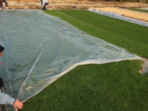 芝生を寒さから守るための養生用フィルムです。 常緑西洋芝に使用すると美しさが持続しやすくなり、 冬に休眠する日本芝に使用すると、休眠から明けるのが非常に速くなります。 市販の製品は非常に高額なため、芝の生産農家が自作で使っている ものを、当店の芝をご購入いただいたお客様限定で販売させていただきます。 市販の0.05mmのフィルムに生産者が手作業で通気口を開けているため、 不揃いな穴となりますことを予めご了承ください(笑) ハサミで簡単に切れますので、必要な形、長さに切ってお使いください。 寒冷紗。サイズ:幅3.6m×1m~100m(10を選ぶと10mでお届けします)