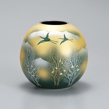 九谷焼 花瓶 5.5号 金雲木立連山 AP2-1352