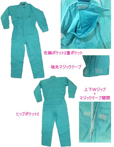 つなぎ オールインワン 長袖 ロング丈パンツ 作業着 イベントオールインワン エメラルドブルー L ONE0105(9000-3)ワークウェア