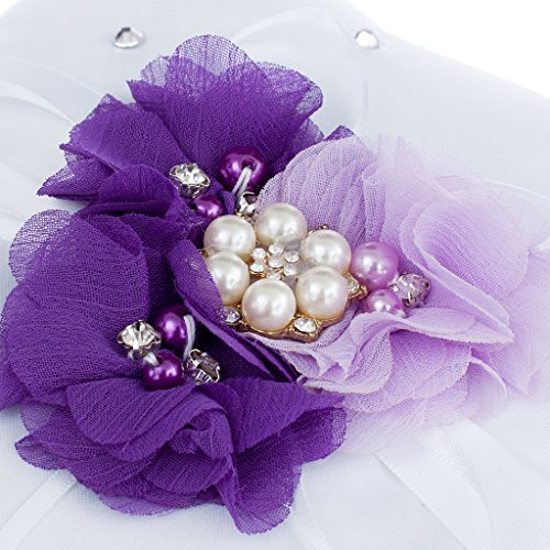 結婚式のリングピロークッションベアラークリスタルパールピンクの花 - 紫の花