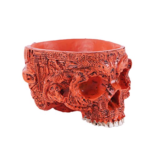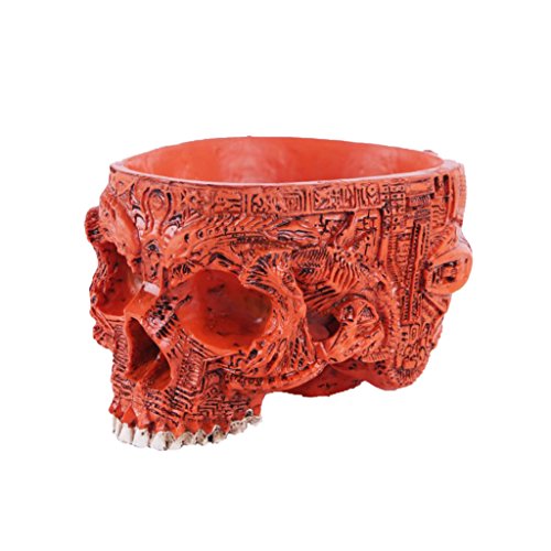 Non-brand 環境人間の頭蓋骨彫刻プランターボックススケルトンコンテナガーデン植木鉢樹脂 - 褐色