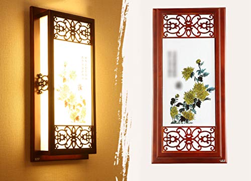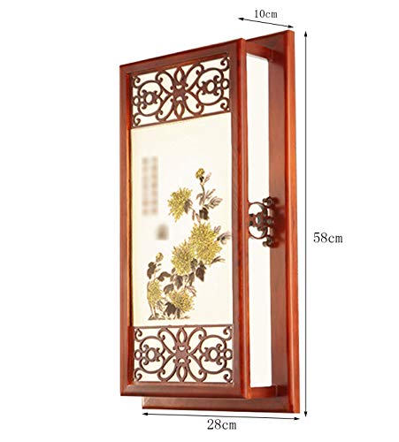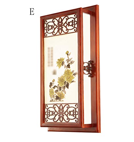 クリエイティブ印刷固体木材中国の壁ランプ通路通路玄関壁ランプベッドサイドランプ三色ライト中国スタイルのLEDランプマルチスタイルオプションのサイズの長方形:58 * 28 * 10センチメートル、正方形:38 * 38 * 10センチメートル (設計 : E)