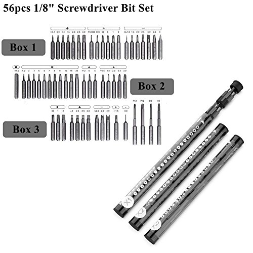 - ★PRACTICAL★Phillips、Slotted、Hex、Trox、5点、Y字型、正方形、三角形、正方形、U字型を含む56pcs 1/8 "(4mm)S2合金磁気ドライバービットが含まれ、ほとんどの電子機器と互換性があります デバイスの修理作業