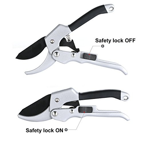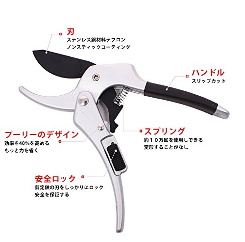 - 【安全デザイン】安全ロックボタンを押すと、剪定鋏の刃はしっかり閉じます。剪定鋏の刃以外の部分はなめらかなデザインで手を傷つけず安心です。