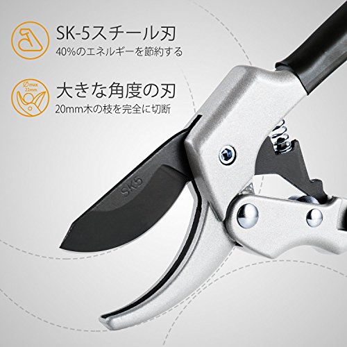 - 【省力&滑り止め】ハンドルと刃は人間工学に基づいてデザインされており、使用者と切断対象に与える負担が少なく省力で手が疲れません。また、ハンドルが滑り止めのTPR材質を採用しますのでご使用時に滑べにくく刈込む作業が楽々になります。