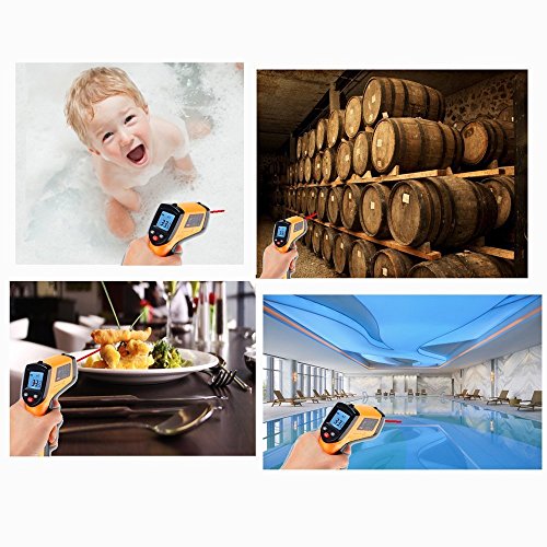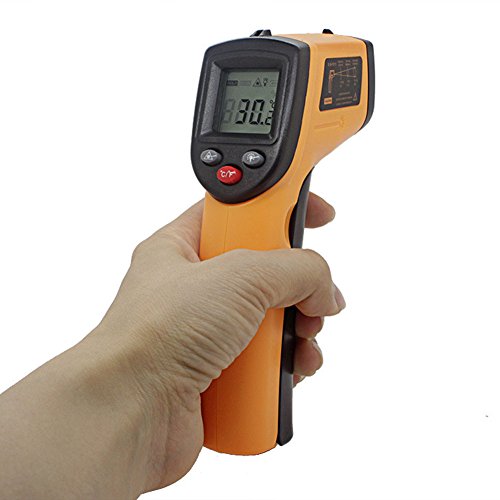 - LCDバックライトディスプレイ。レーザーポイントで測定範囲の円の中心が分かり、離れるとどこを測定しているのか心配しません。赤外線温度計はバックライト付きの見やすいLCDです。デジタル液晶ディスプレイは、暗いところでも読み取ります。