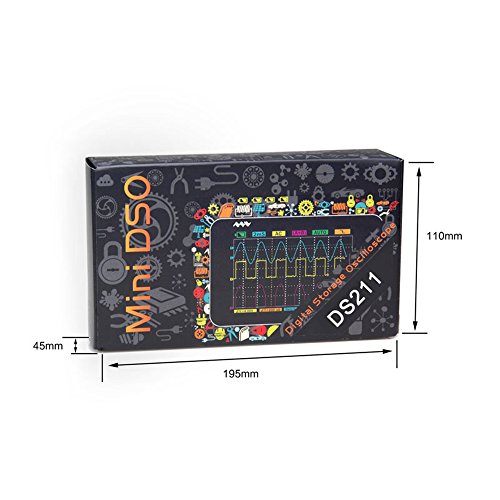 仕様: 入力カップリング:AC/DC サンプリングレート:1MSa/ S アナログブロードバンド:200kHz ストレージ:8K アナログ入力電気抵抗:>500KΩ. 垂直の感度:10mv/Div~10V/Div(1-2-5ステップ) 水平の感度:1uS/Div~10S/Div(1-2-5ステップ) 2.8インチTFT LCDディスプレー(320×240) パワー:500mAhリチウム電池 重量:65g 寸法:106.5*55.7*11.5mm