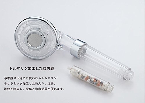 - 【トルマリン加工した粒内蔵】浄水器のろ過にも使われるトルマリンをセラミック加工した粒入り、塩素、雑物を除去し、脱臭と浄水効果が優れます。ボールが取り出しやすいので、交換も便利簡単です。ご使用中、内蔵トルマリンも活動して水を浄化できます。