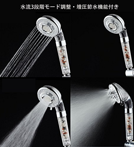 OBEST シャワーヘッド 3段階モード調節可能 節水 増圧 マイナスイオンシャワーヘッド 手元ストップ 水流調整 トルマリンボール入り