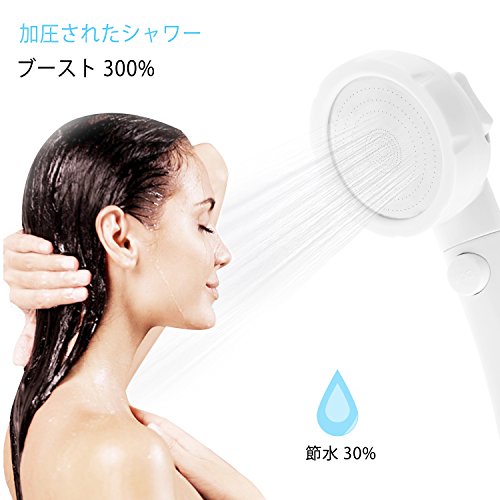 OBEST シャワーヘッド 3段階モード調節 ストップボタン付き バス用品 節水 軽量 極細水流 低水圧増圧 国際汎用基準G1/2 工具不要 取付簡単