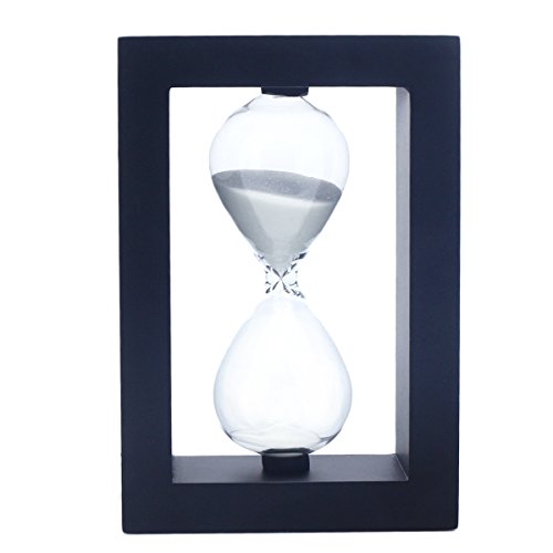 砂時計 30分計 長方形 透明感 白枠 木製 ギフト (ブラック枠×ホワイト)